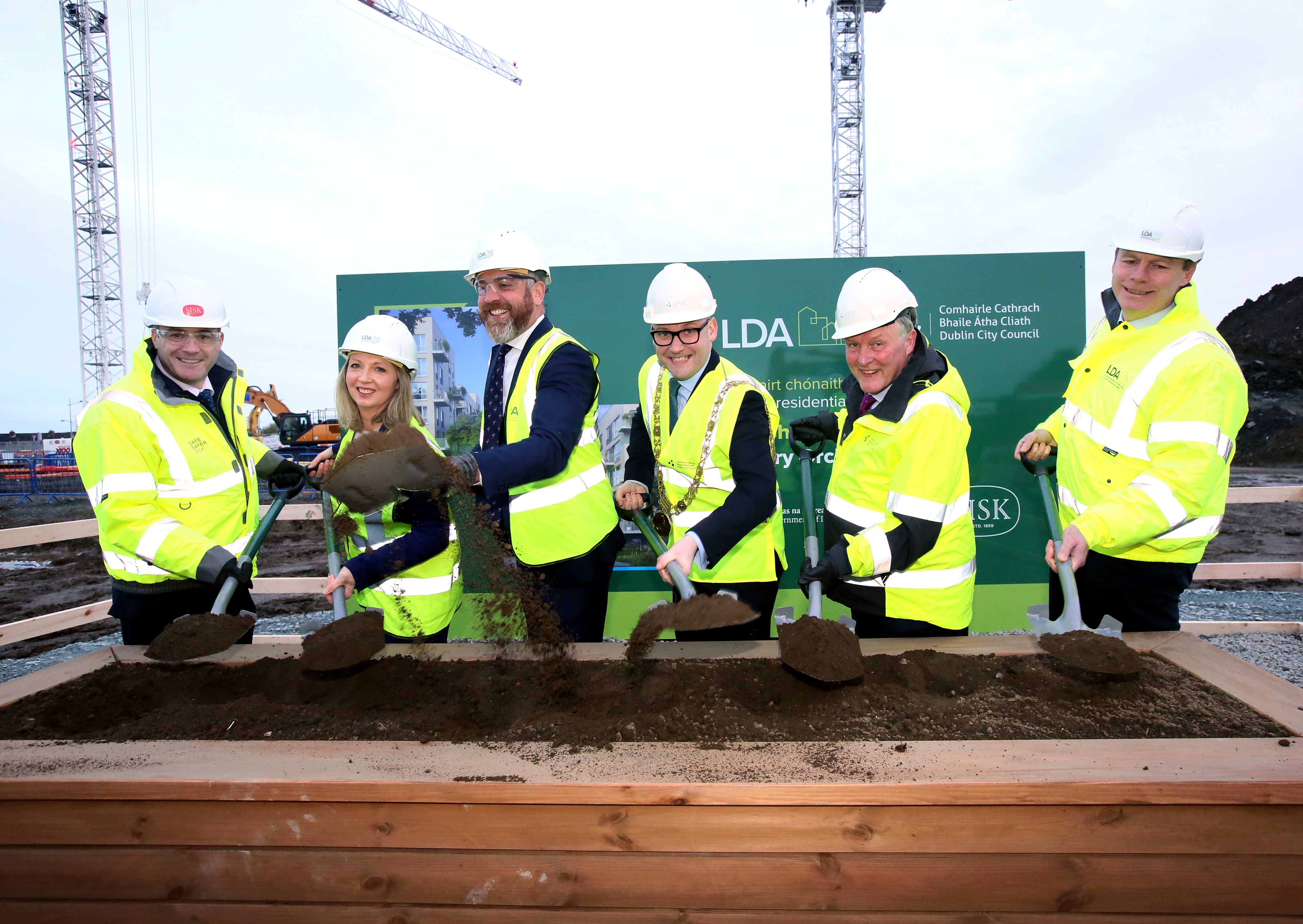 Minister of State at the Department of Housing, Local Government and Heritage, Christopher O’Sullivan TD, The Land Development Agency (LDA) and Dublin City Council (DCC) have marked the official start of construction for 708 new affordable homes at Cherry Orchard Point in Dublin 10.