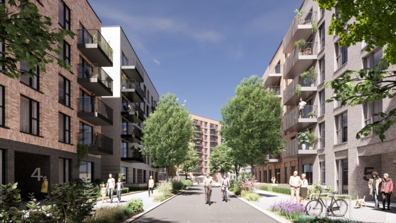 The development will now deliver 383 high-quality, sustainable homes on a 2.8-hectare site, owned by Dublin City Council. The homes will be a mix of studio, one, two and three bed apartments in five apartment blocks ranging from 5 to 9 storeys. The development will also include community spaces, a crèche and landscaped open spaces.
