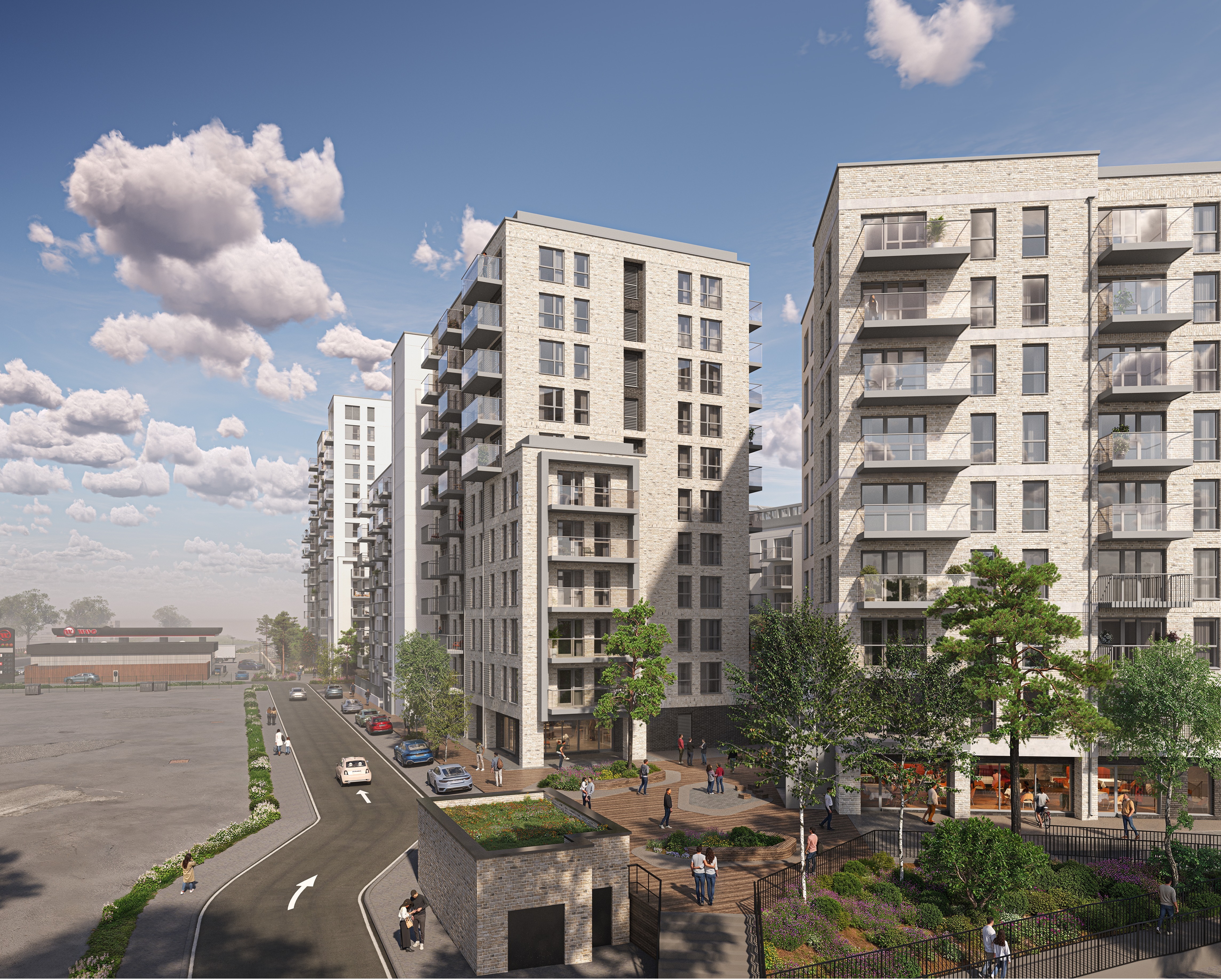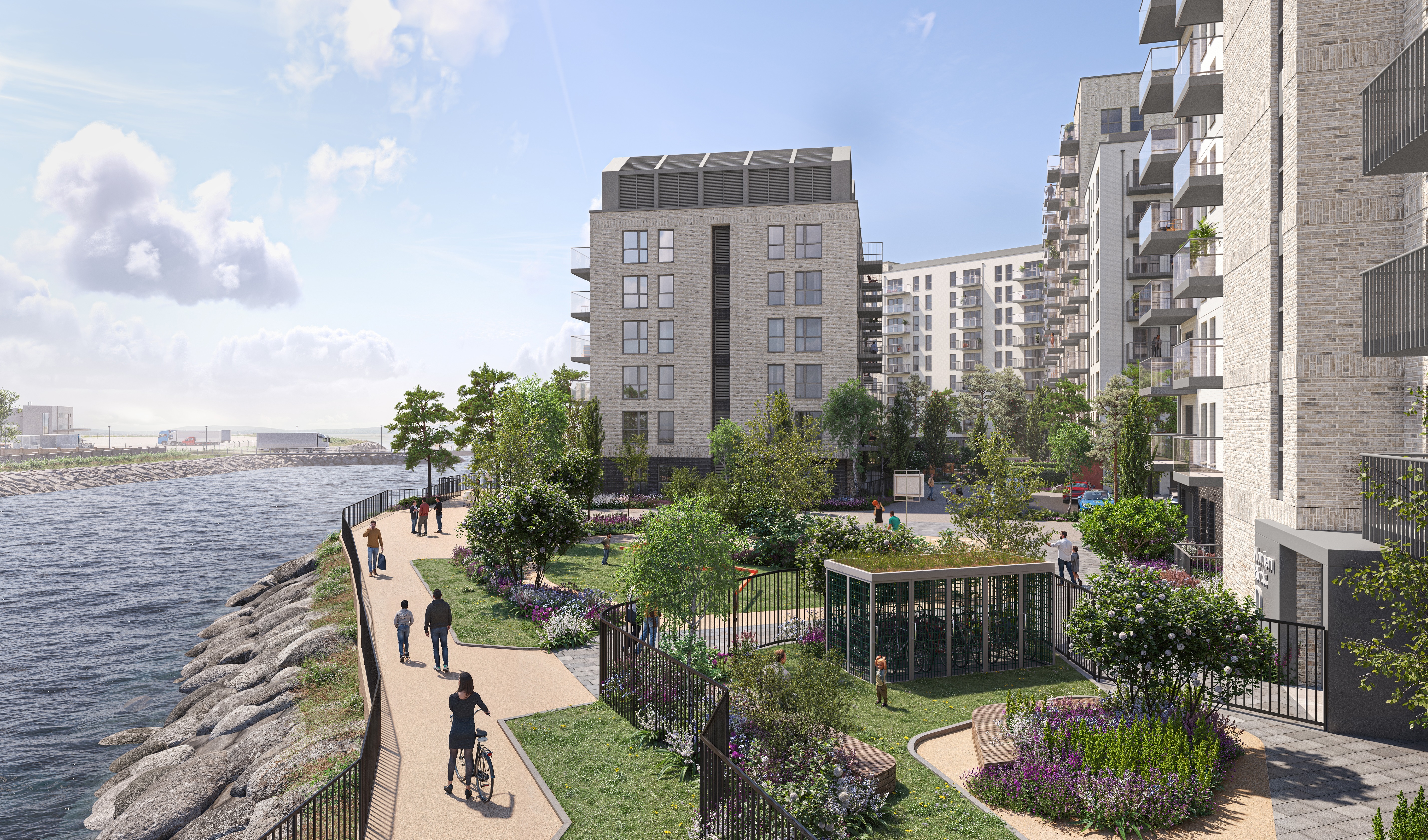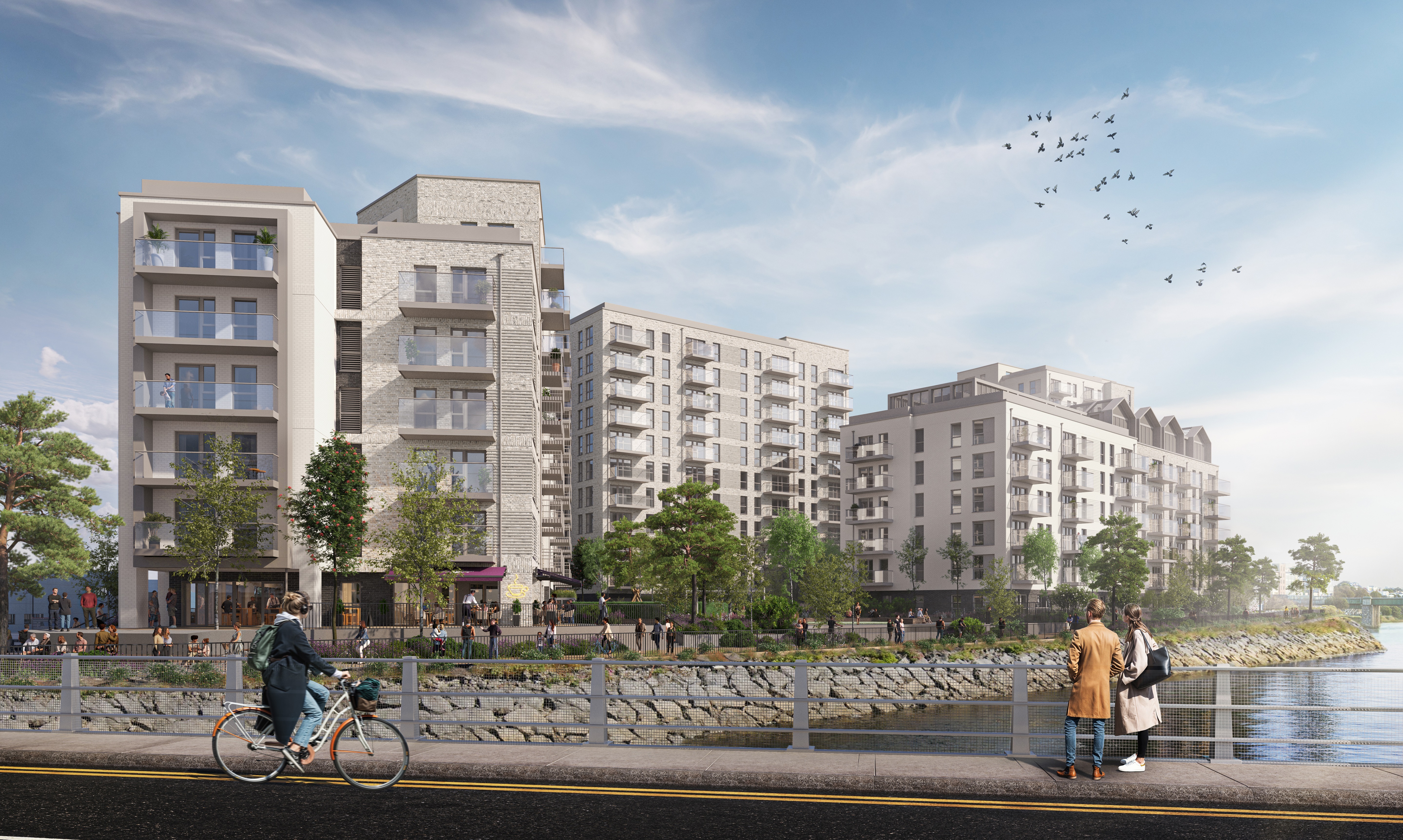 The first phase, Amharc Atalia, the project's working title, will ensure the delivery of much needed affordable and social homes in Galway City, the development of 356 affordable and social homes comprising 172 one bed, 169 two bed, 15 three bed apartments also include a new public plaza, a landscaped coastal walking path, communal gardens, play areas, retail units and a creche.