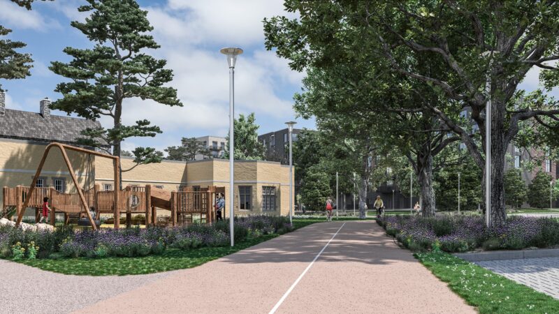 The development will also provide extensive services and facilities including a community centre with indoor sports facilities, a medical centre, retail units, a café, a creche and a new public plaza. This will transform what is currently a closed 11-hectare site into a new welcoming, socially integrated, and sustainable urban community.