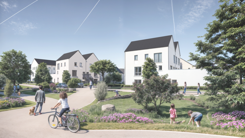 The homes will comprise a mix of houses, duplexes and own-door apartments - suitable for families, first time buyers and older people - as well as a creche, landscaped open spaces, and new pedestrian and cycle greenway links. The homes will be made available for sale through the Local Authority Affordable Purchase Scheme or as social homes.